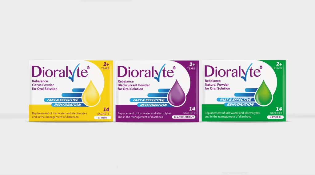 Dioralyte is an oral rehydration therapy containing a balanced combination of electrolytes which include glucose, sodium chloride, potassium chloride and disodium hydrogen citrate. It is recommended for replacing essential water and salt loss, which can occur for various reasons, including when you have diarrhoea. Available in blackcurrant, citrus and natural flavours.